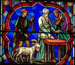 הכהן הגדול מטיל גורלות. המקור